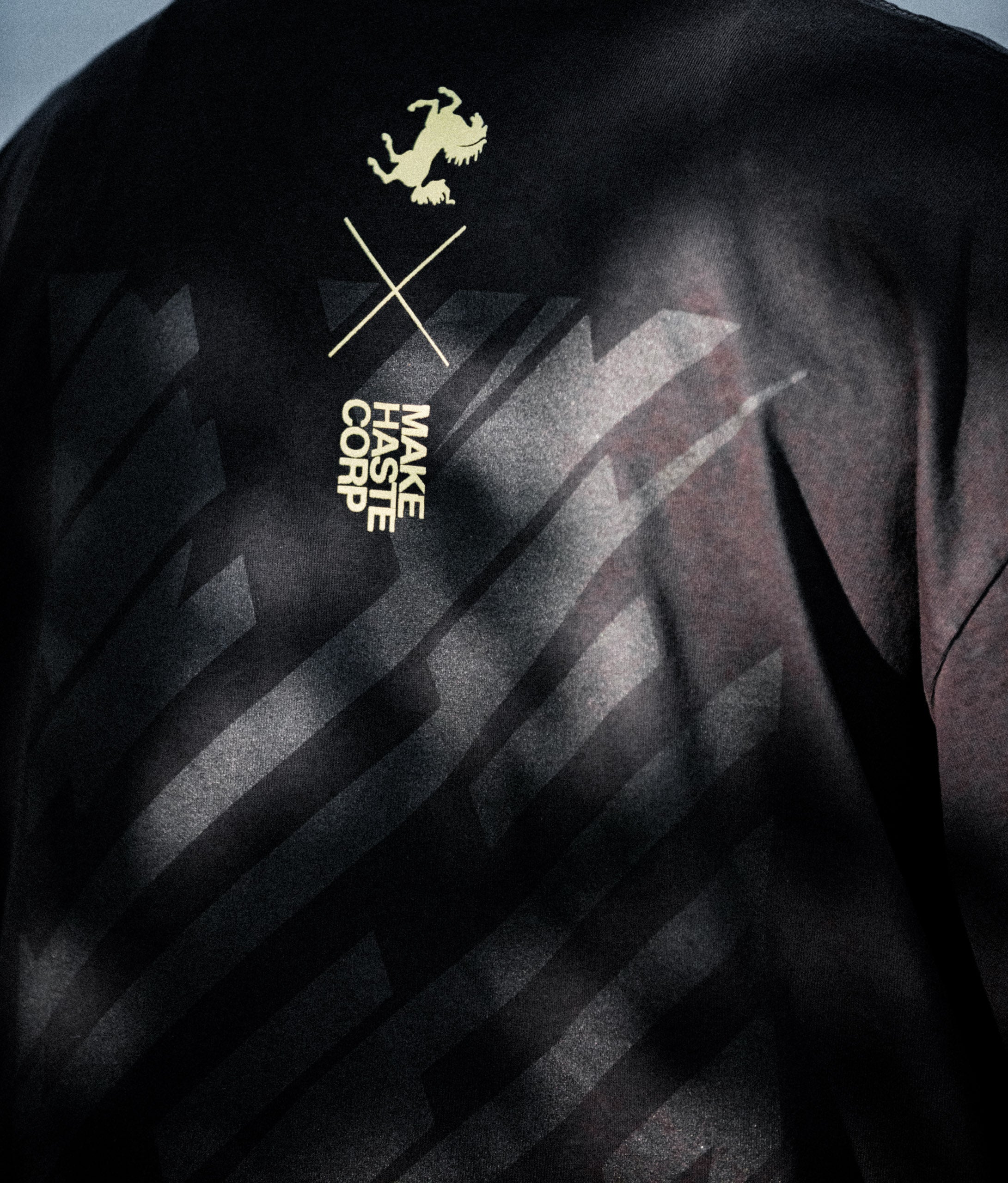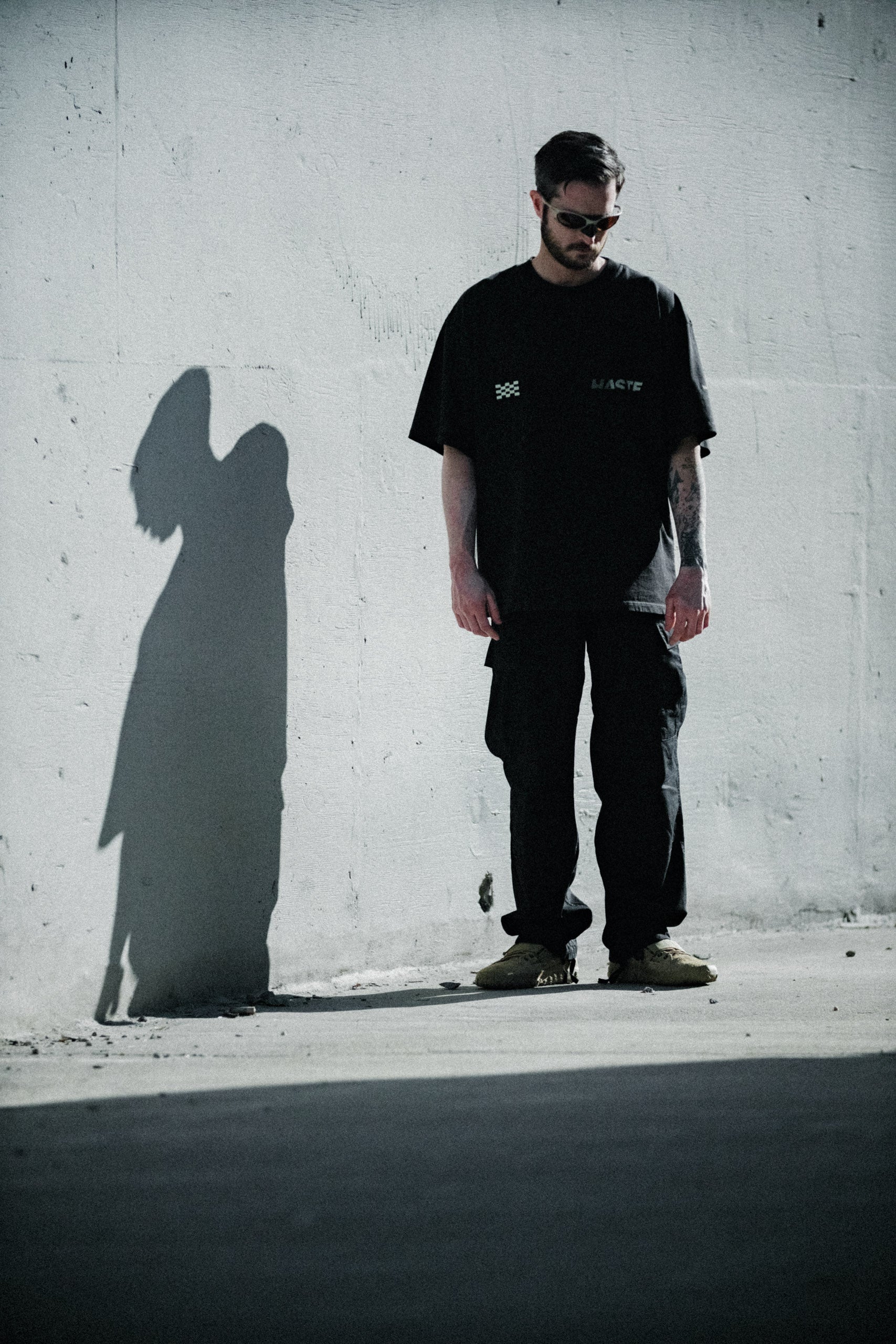Worn loose, the fit drapes like an anti-flag. Organic cotton in faded black with screen print hits pulled directly from the RXR livery design. This isn’t a collection; it’s an artifact from the spaces between past and future, light and dark. For those who dare to remain unspoken.